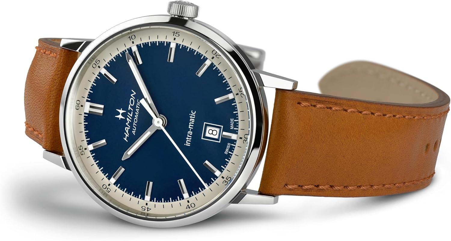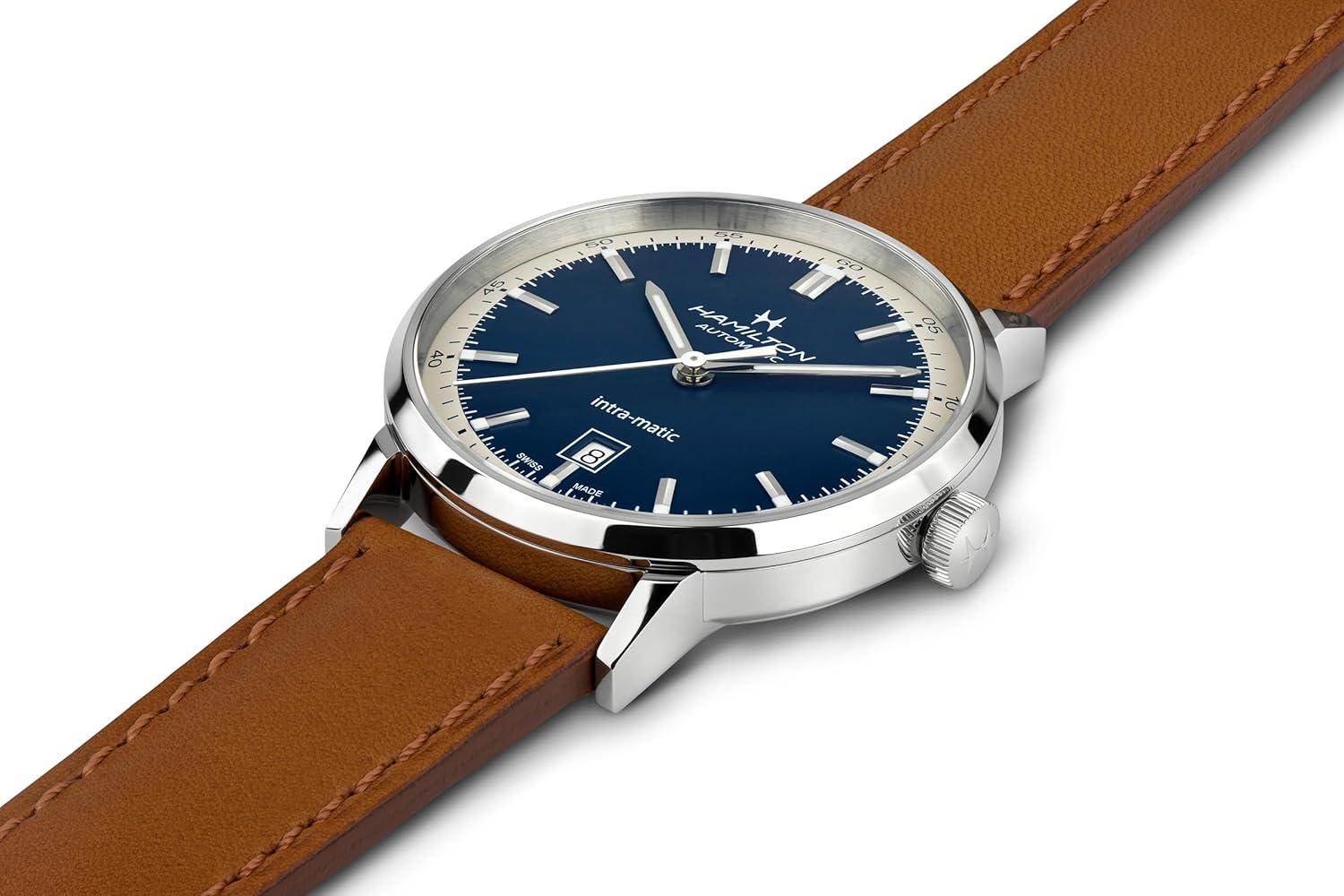 Hamilton American Classic Automatic Men’s Watch, 40mm Stainless Steel Case, Swiss Made, Blue Dial Analog Wrist Watch for Men, 50m Waterproof, Sapphire Crystal, 3-Hand Movement, Cow Leather Strap