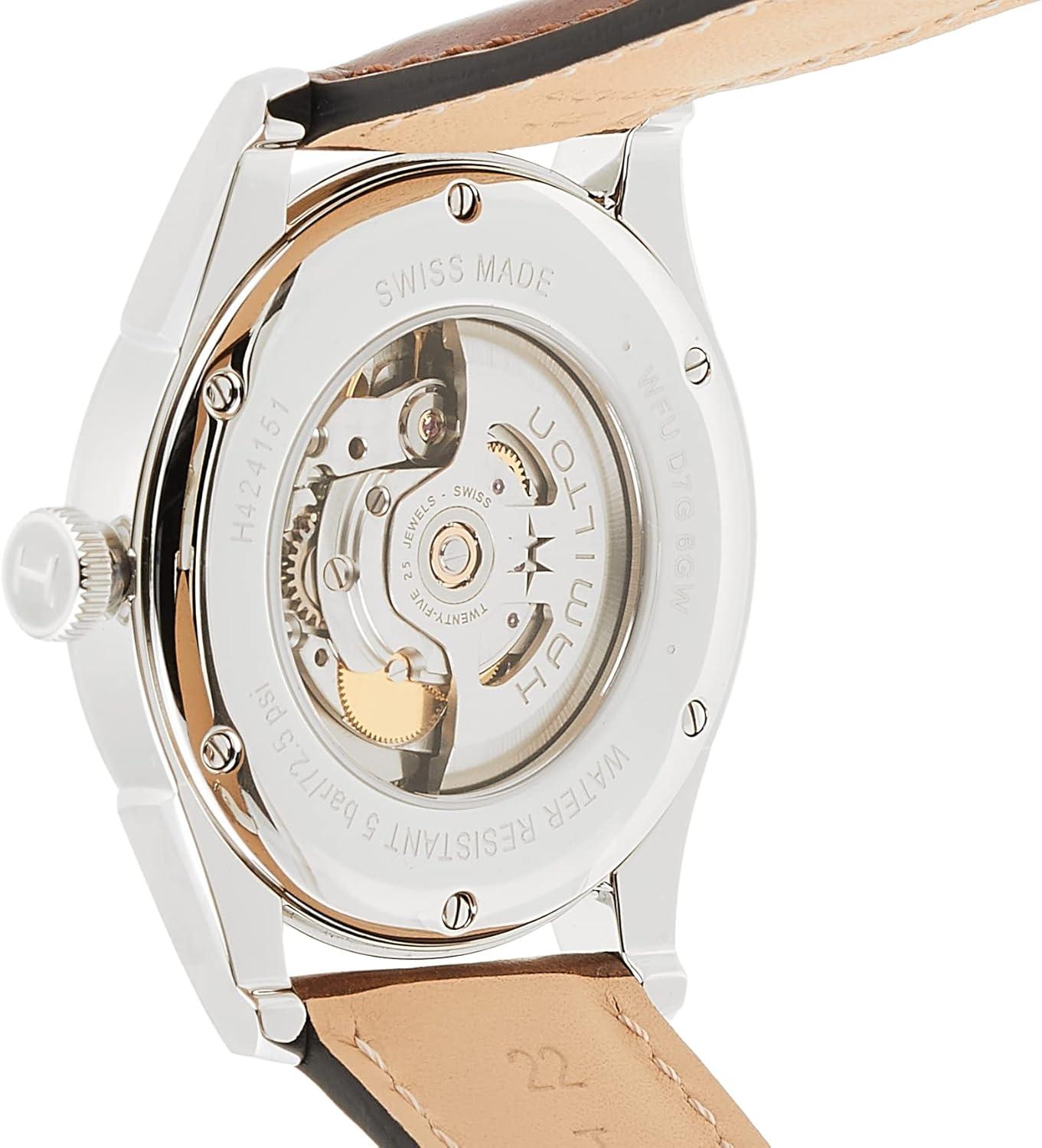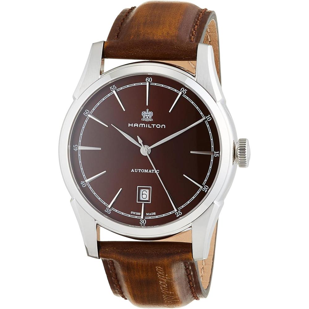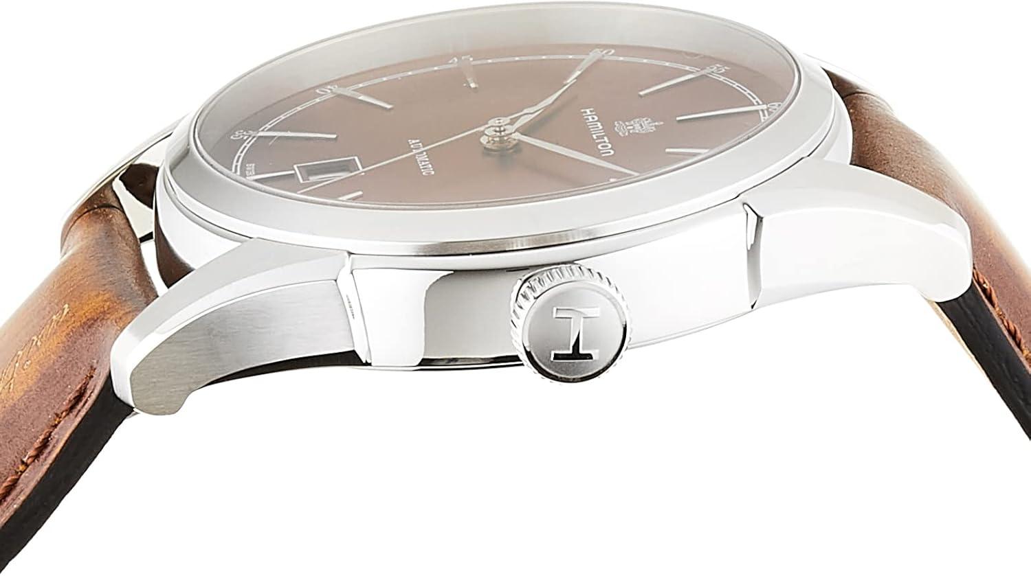 Hamilton American Classic Automatic Men’s Watch, 42mm Stainless Steel Case, Swiss Made, Brown Dial Analog Wrist Watch for Men, 50m Waterproof, Sapphire Crystal, 3-Hand Movement, Calf Leather Strap
