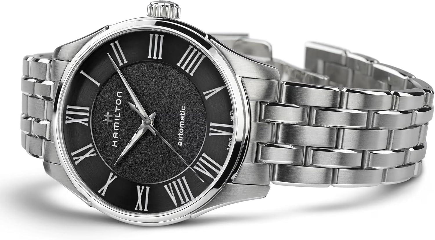 Hamilton Jazzmaster Automatic Men’s Watch, 40mm Stainless Steel Case, Swiss Made, Black Dial Analog Wrist Watch for Men, 50m Waterproof, Sapphire Crystal, 3-Hand Movement, Strap