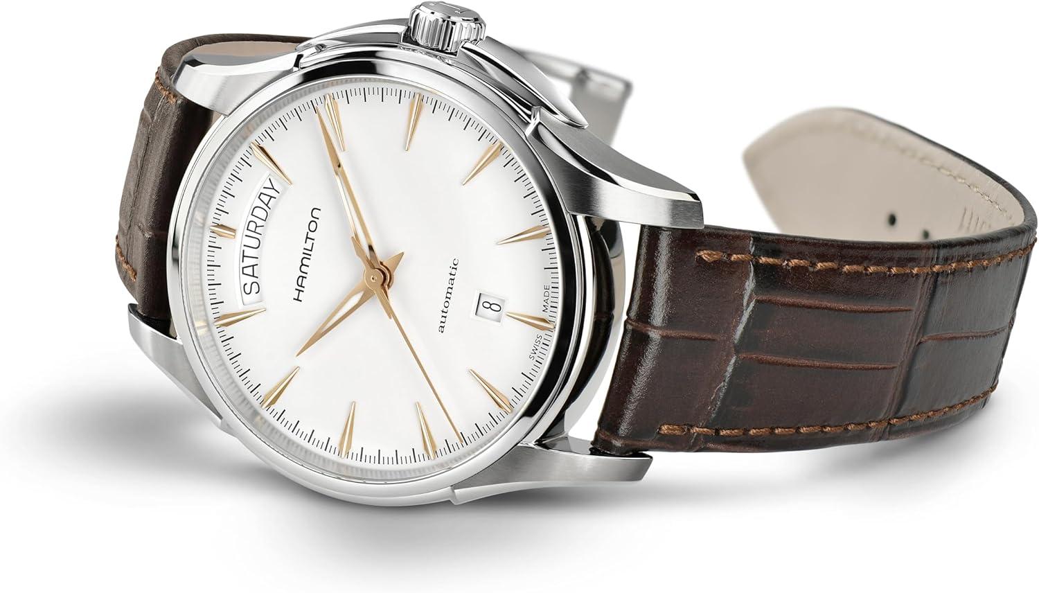Hamilton Jazzmaster Automatic Men’s Watch, 40mm Stainless Steel Case, Swiss Made, White Dial Analog Wrist Watch for Men, 50m Waterproof, Sapphire Crystal, Calf Leather Strap