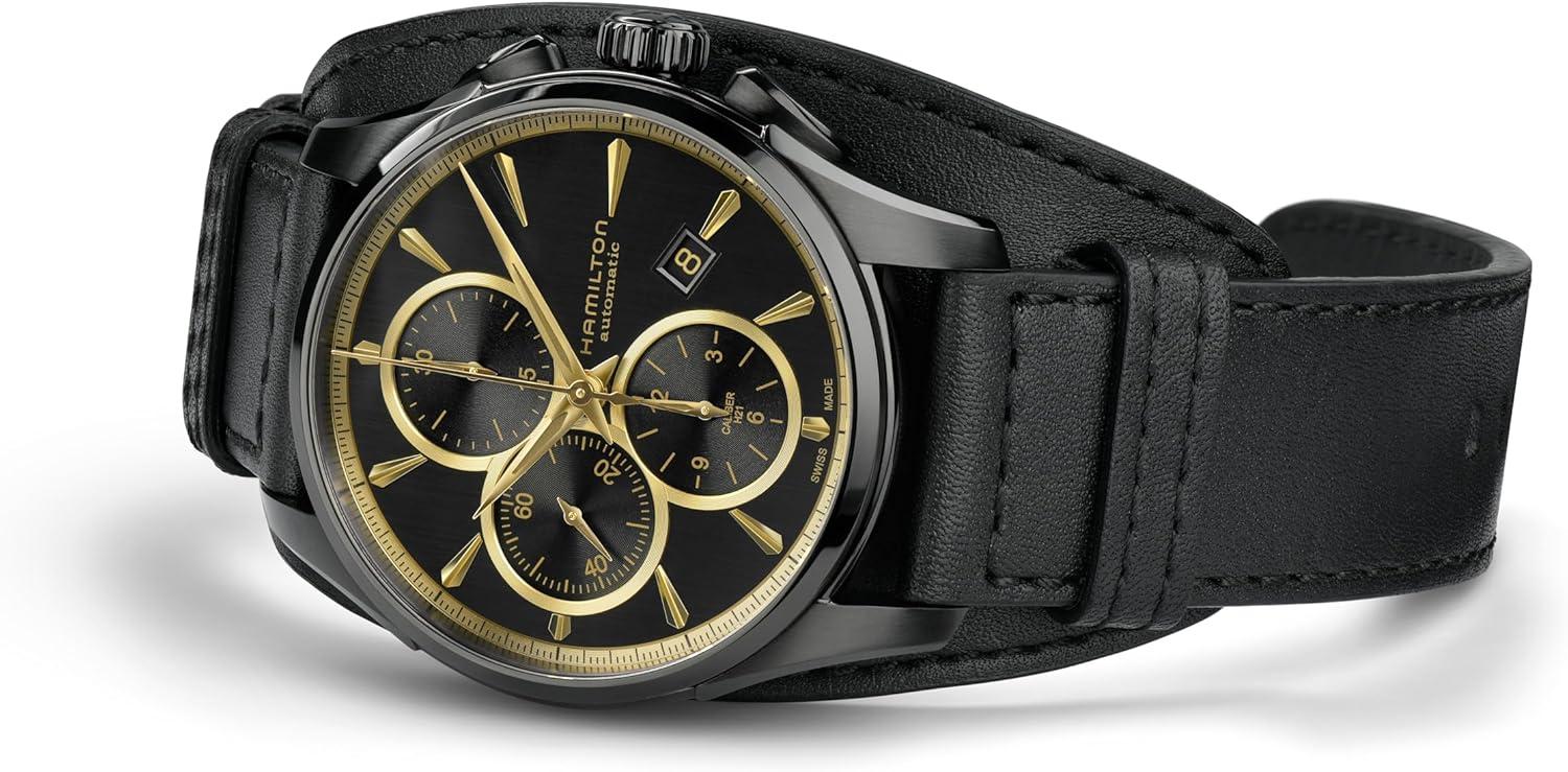 Hamilton Jazzmaster Automatic Men’s Watch, 42mm Stainless Steel Case, Swiss Made, Black Dial Analog Wrist Watch for Men, 100m Waterproof, Sapphire Crystal, Cow Leather Strap