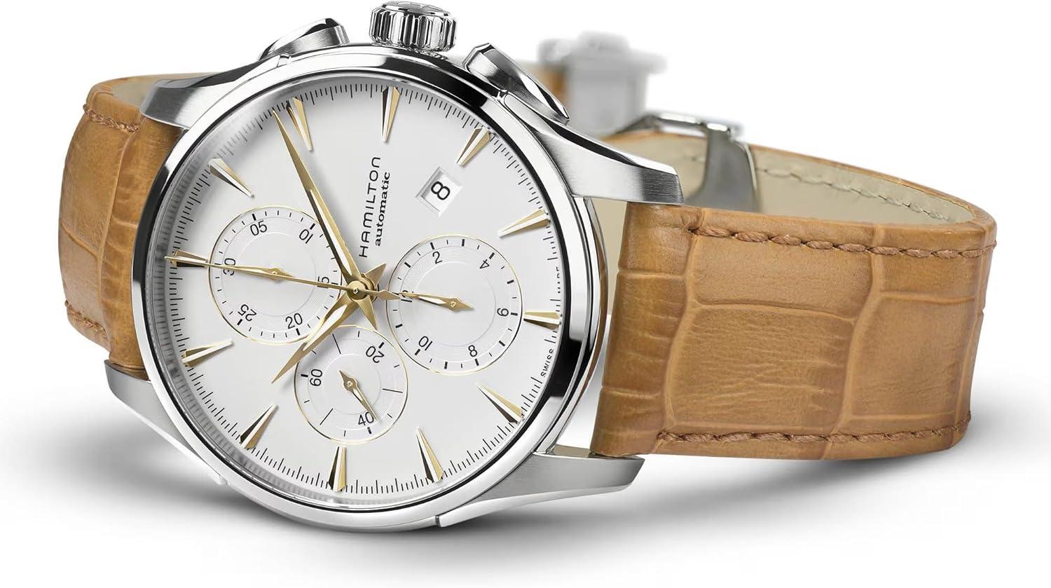 Hamilton Jazzmaster Automatic Men’s Watch, 42mm Stainless Steel Case, Swiss Made, White Dial Analog Wrist Watch for Men, 100m Waterproof, Sapphire Crystal, Calf Leather Strap