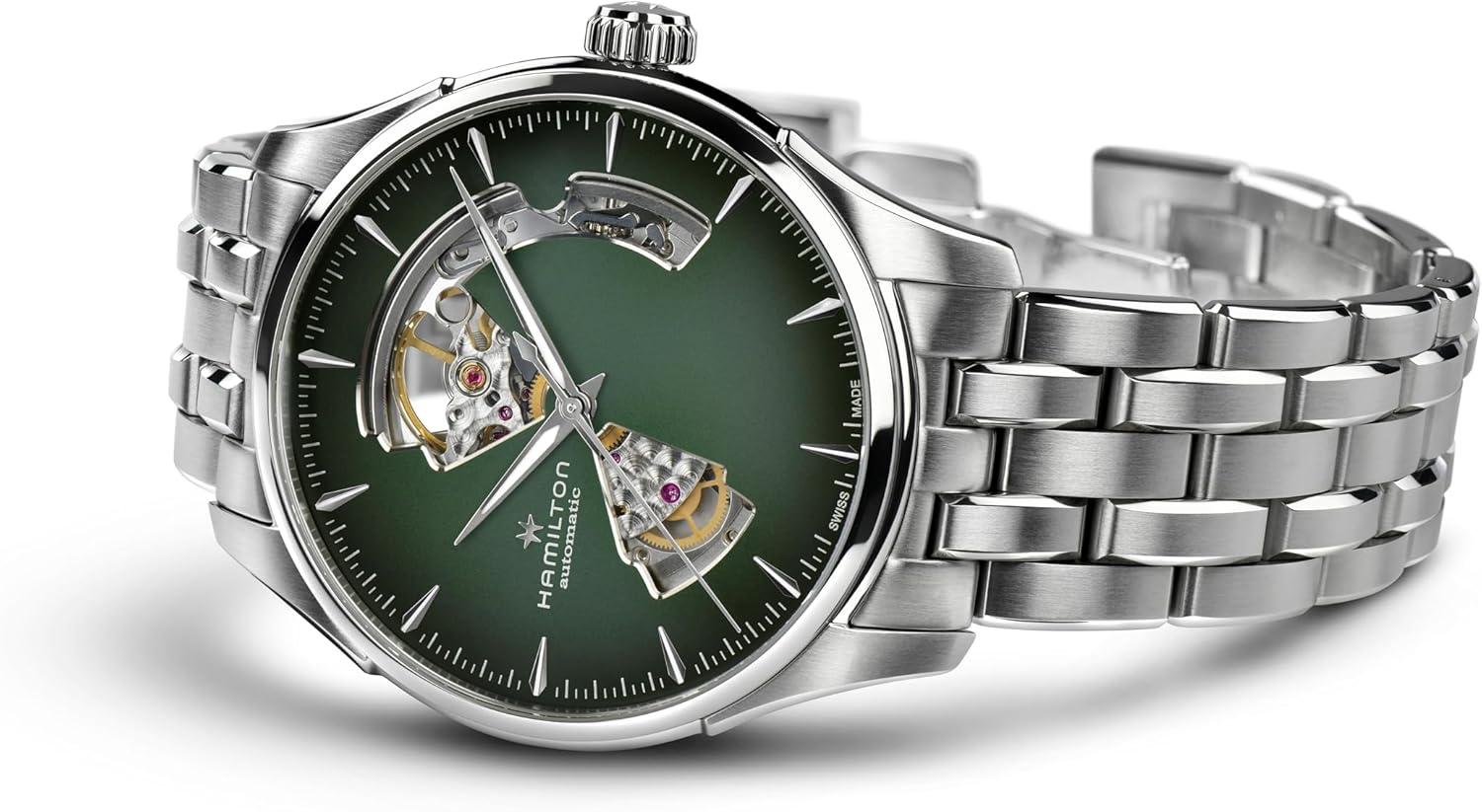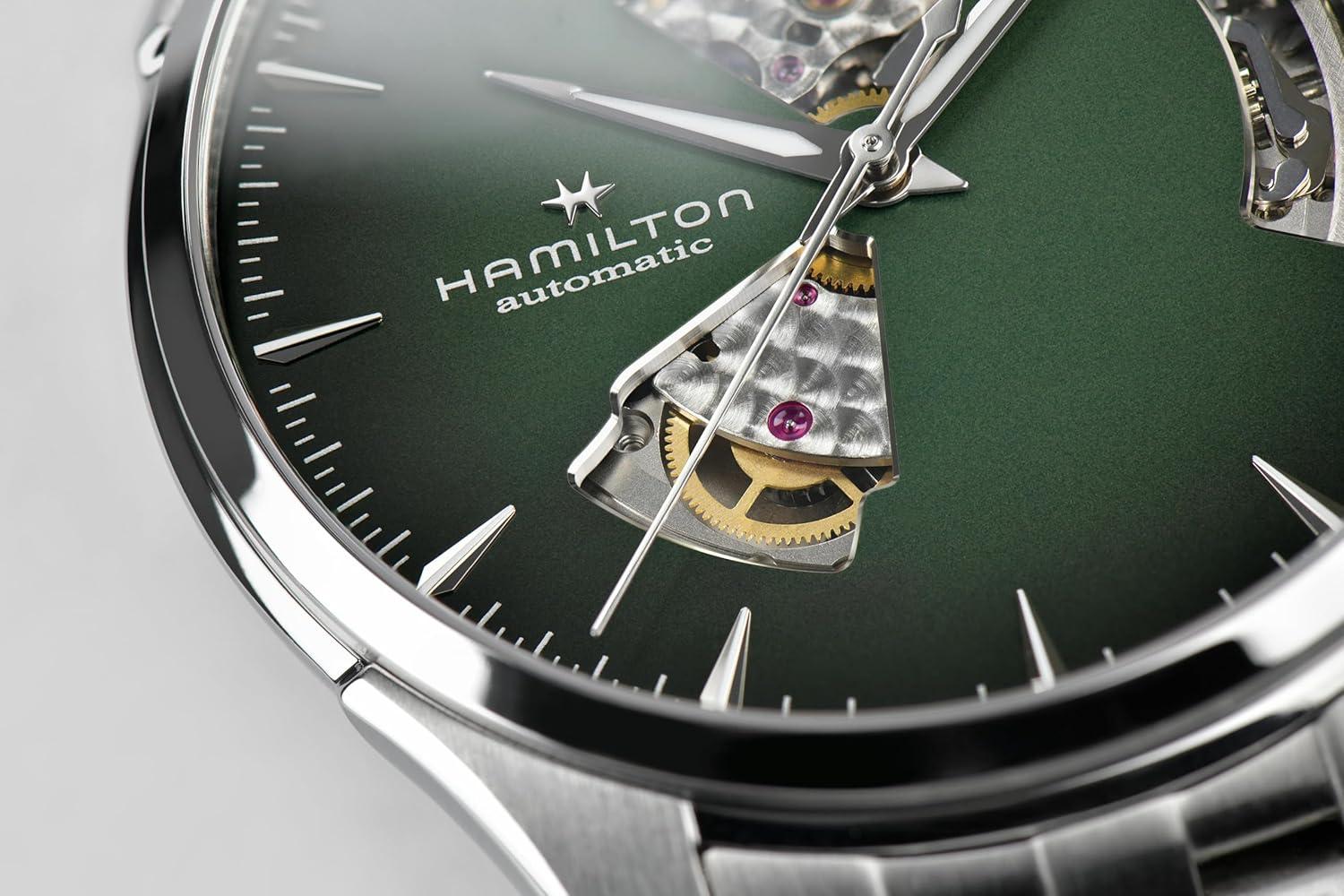Hamilton Jazzmaster Open Heart Automatic Men’s Watch, 40mm Stainless Steel Case, Swiss Made, Green Dial Analog Wrist Watch, 50m Waterproof, Sapphire Crystal, 3-Hand Movement, Stainless Steel Strap