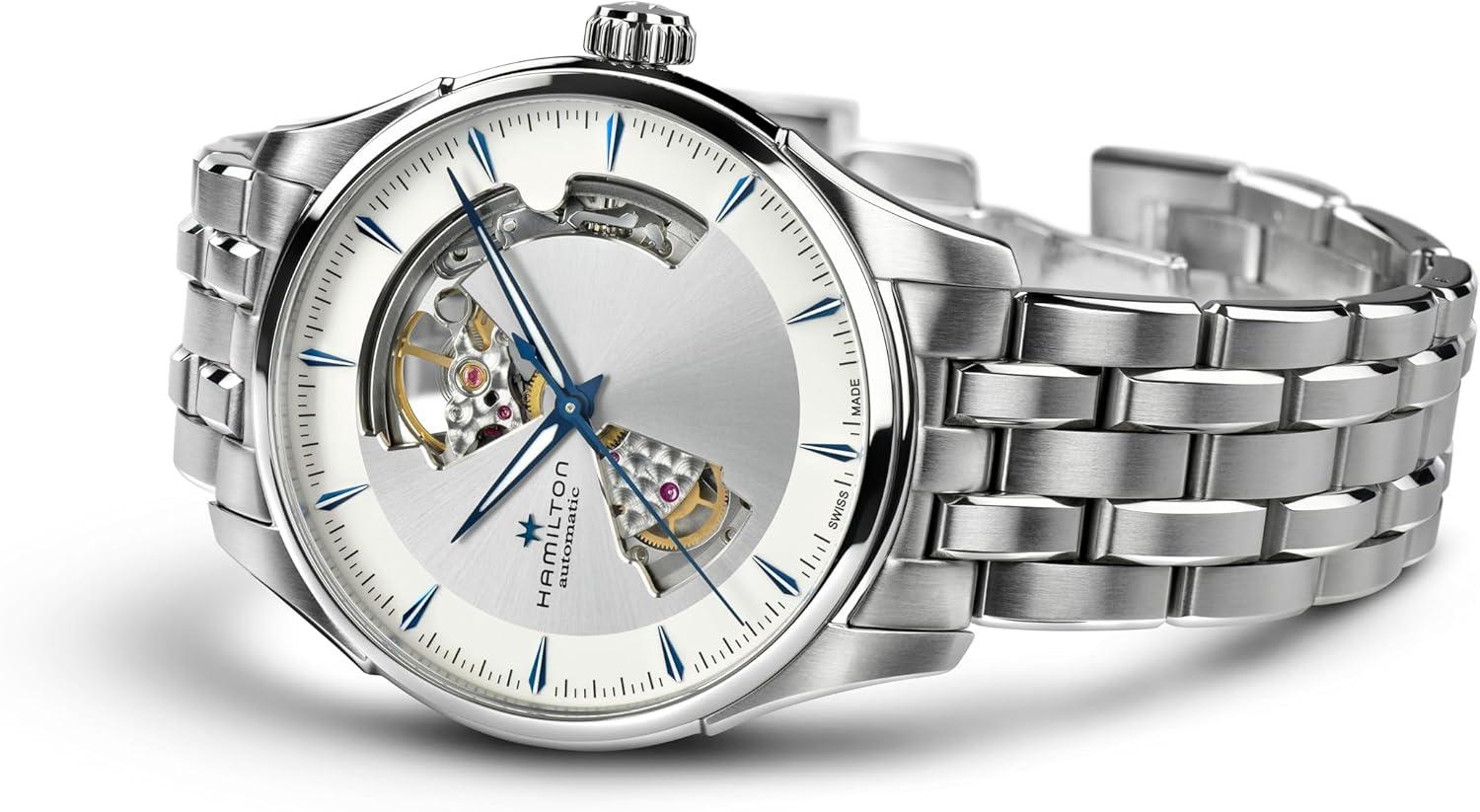 Hamilton Jazzmaster Open Heart Automatic Men’s Watch, 40mm Stainless Steel Case, Swiss Made, Silver Dial Analog Wrist Watch, 50m Waterproof, Sapphire Crystal, 3-Hand Movement, Stainless Steel Strap