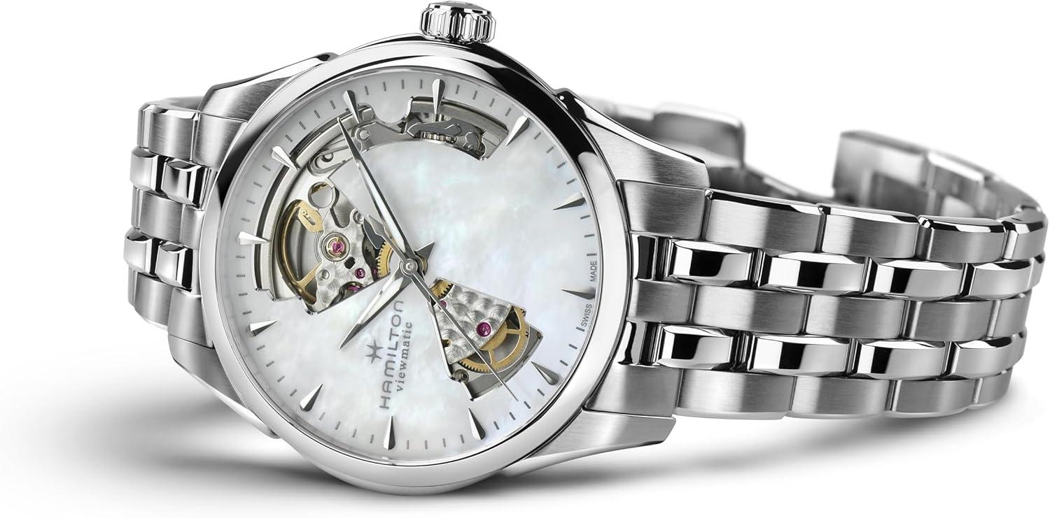 Hamilton Jazzmaster Open Heart Automatic Women’s Watch, 36mm Stainless Steel Case, Swiss Made, Mother of Pearl Dial Analog Wrist Watch, 50m Waterproof, Sapphire Crystal, Stainless Steel Strap