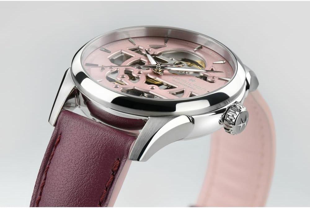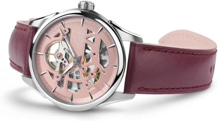 Hamilton Jazzmaster Skeleton Automatic Women’s Watch, 36mm Stainless Steel Case, Swiss Made, Pink Dial Analog Wrist Watch, 50m Waterproof, Sapphire Crystal, 3-Hand Movement, Cow Leather Strap