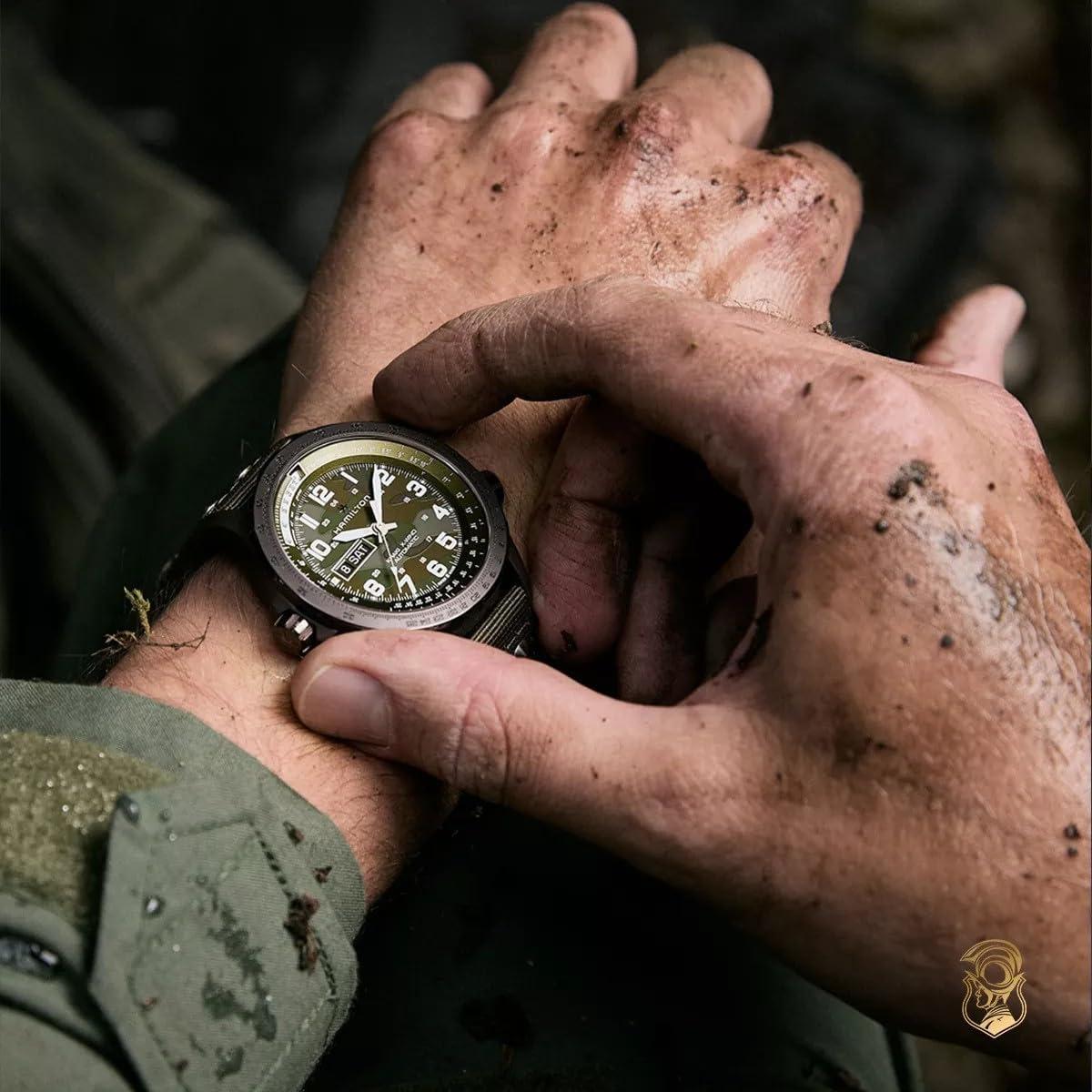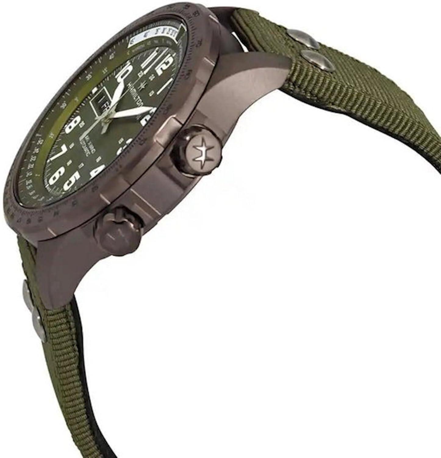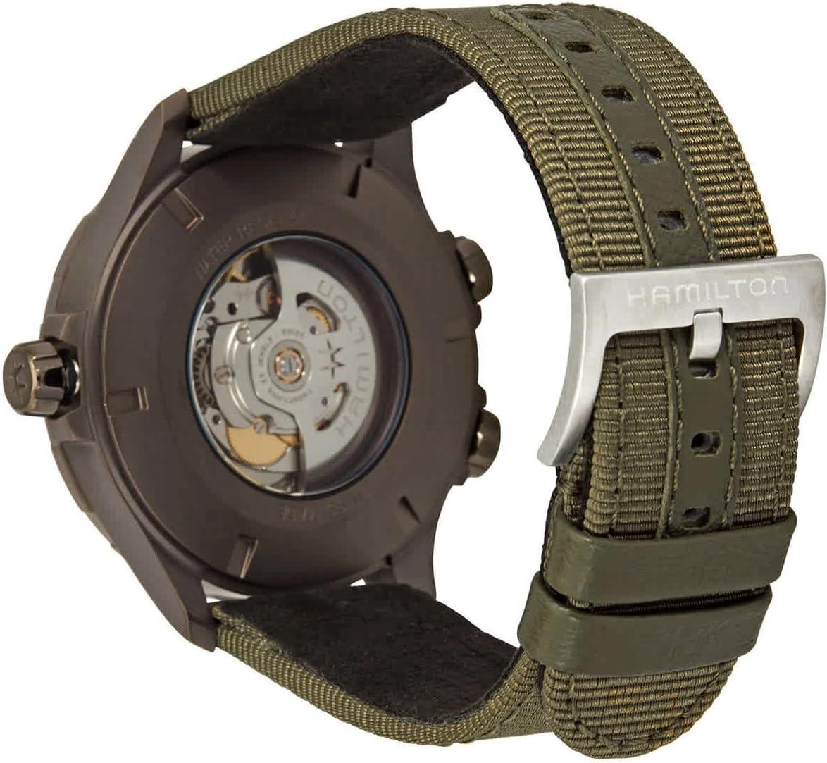 Hamilton Khaki Aviation Automatic Men’s Watch, 45mm Stainless Steel Case, Swiss Made, Green Dial Analog Wrist Watch for Men, 100m Waterproof, Sapphire Crystal, 3-Hand Movement, Textile Strap