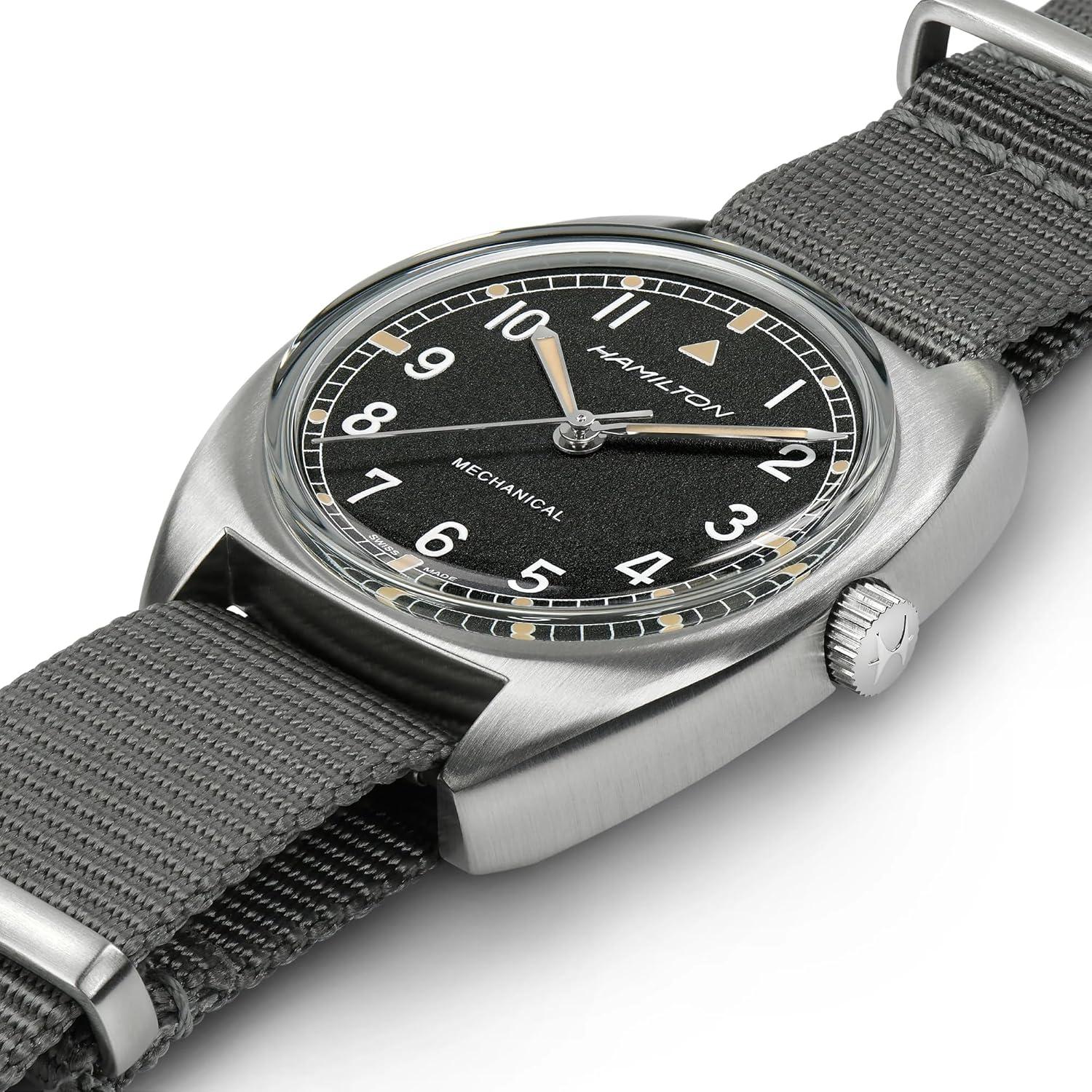Hamilton Khaki Aviation Pilot Mechanical Men’s Watch, 36mm x 33mm Stainless Steel Case, Swiss Made, Black Dial Analog Wrist Watch for Men, 100m Waterproof, Mineral Crystal, Textile Strap