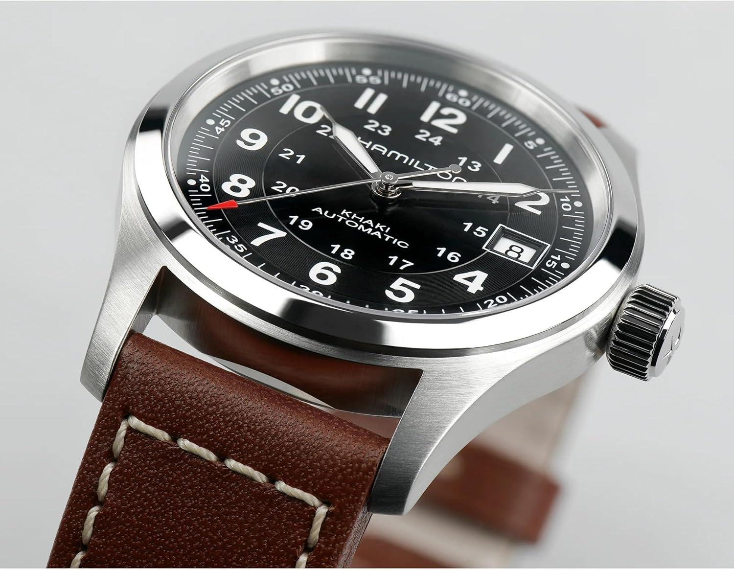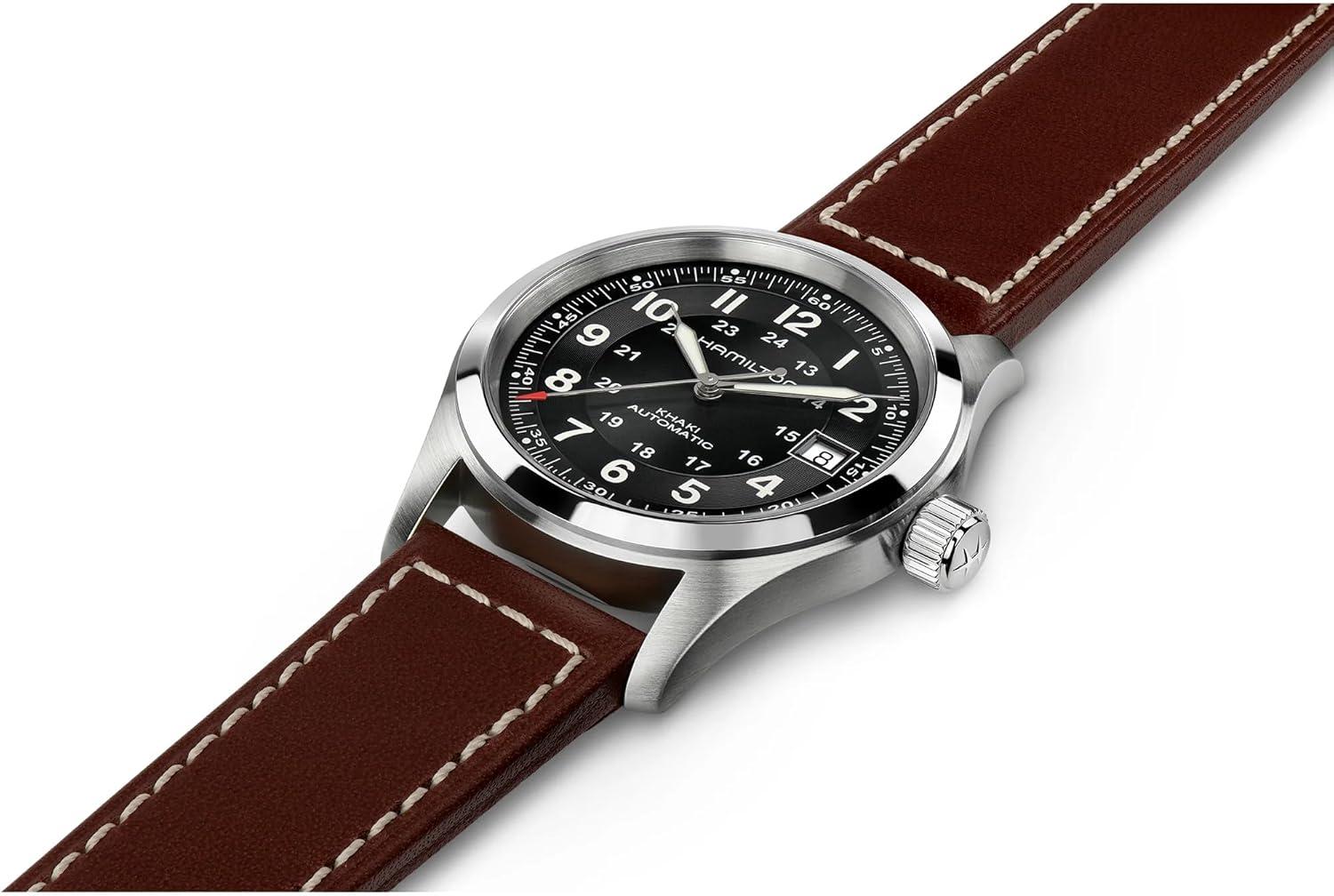 Hamilton Khaki Field Automatic Men’s Watch, 38mm Stainless Steel Case, Swiss Made, Black Dial Analog Wrist Watch for Men, 100m Waterproof, Sapphire Crystal, 3-Hand Movement, Cow Leather Strap