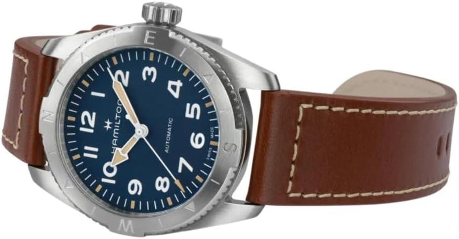 Hamilton Khaki Field Expedition Automatic Men’s Watch, 37mm Stainless Steel Case, Swiss Made, Blue Dial Analog Wrist Watch, 100m Waterproof, Sapphire Crystal, 3-Hand Movement, Cow Leather Strap