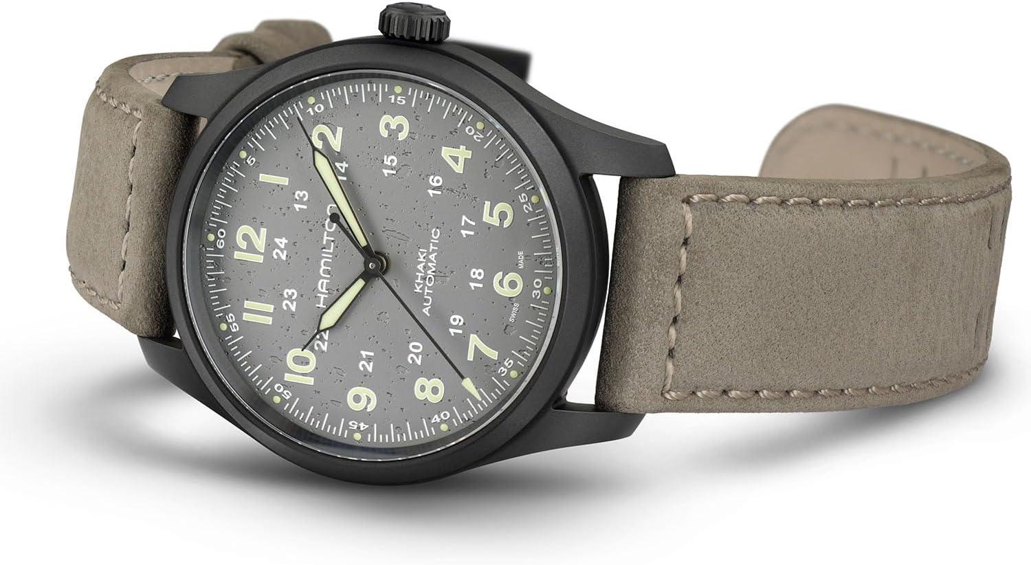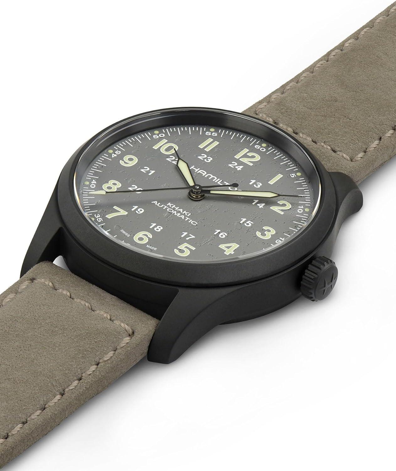 Hamilton Khaki Field Titanium Automatic Men’s Watch, 38mm Titanium Case, Swiss Made, Grey Dial Analog Wrist Watch for Men, 100m Waterproof, Sapphire Crystal, 3-Hand Movement, Cow Leather Strap