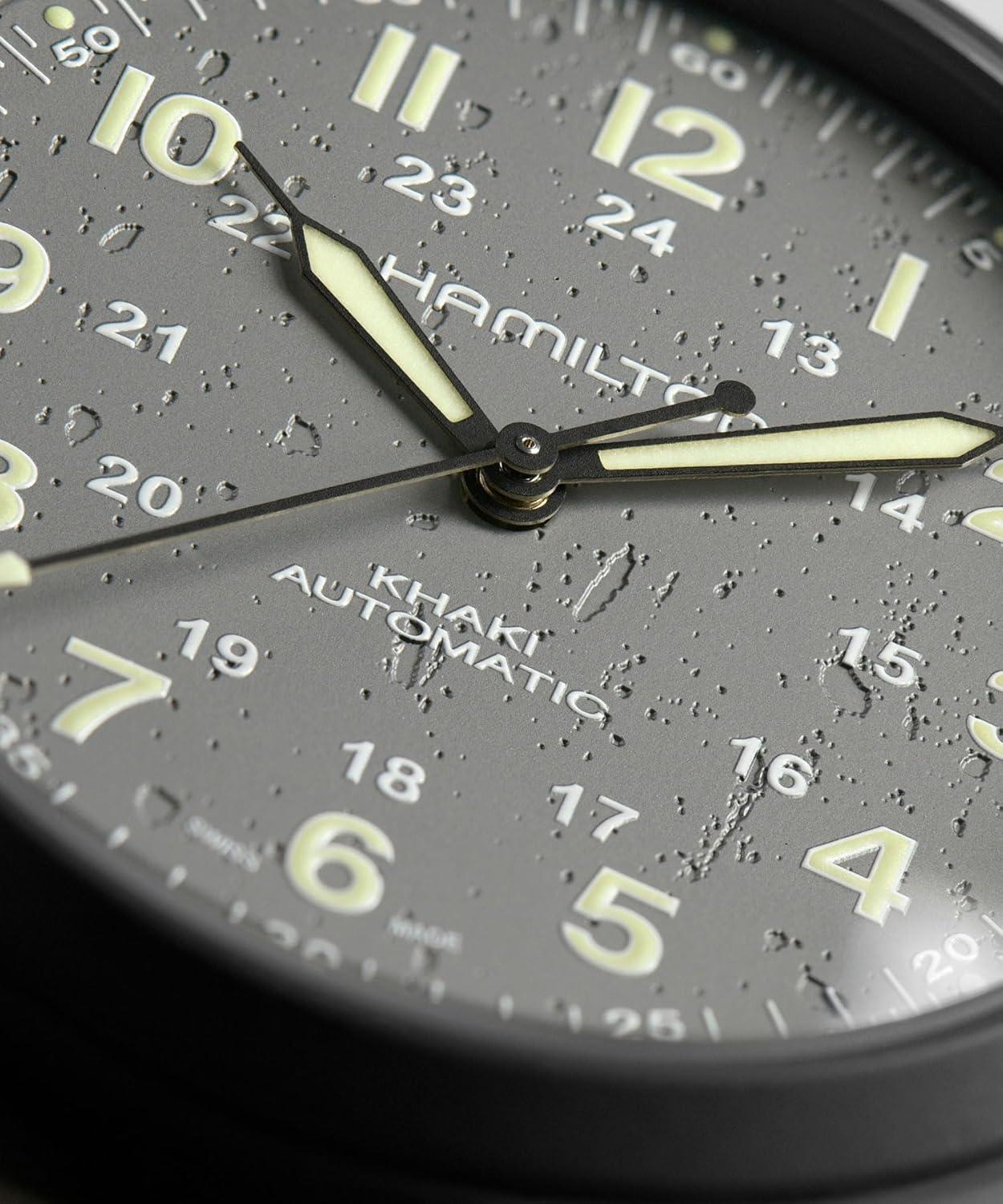 A century-long pedigree in military timepieces combined with lightweight materials make the Khaki Field Titanium Automatic the ultimate all-purpose watch for modern heroes. Truly fit for life in the field, the 38mm case size accentuates comfort and adaptability with a historically authentic design.