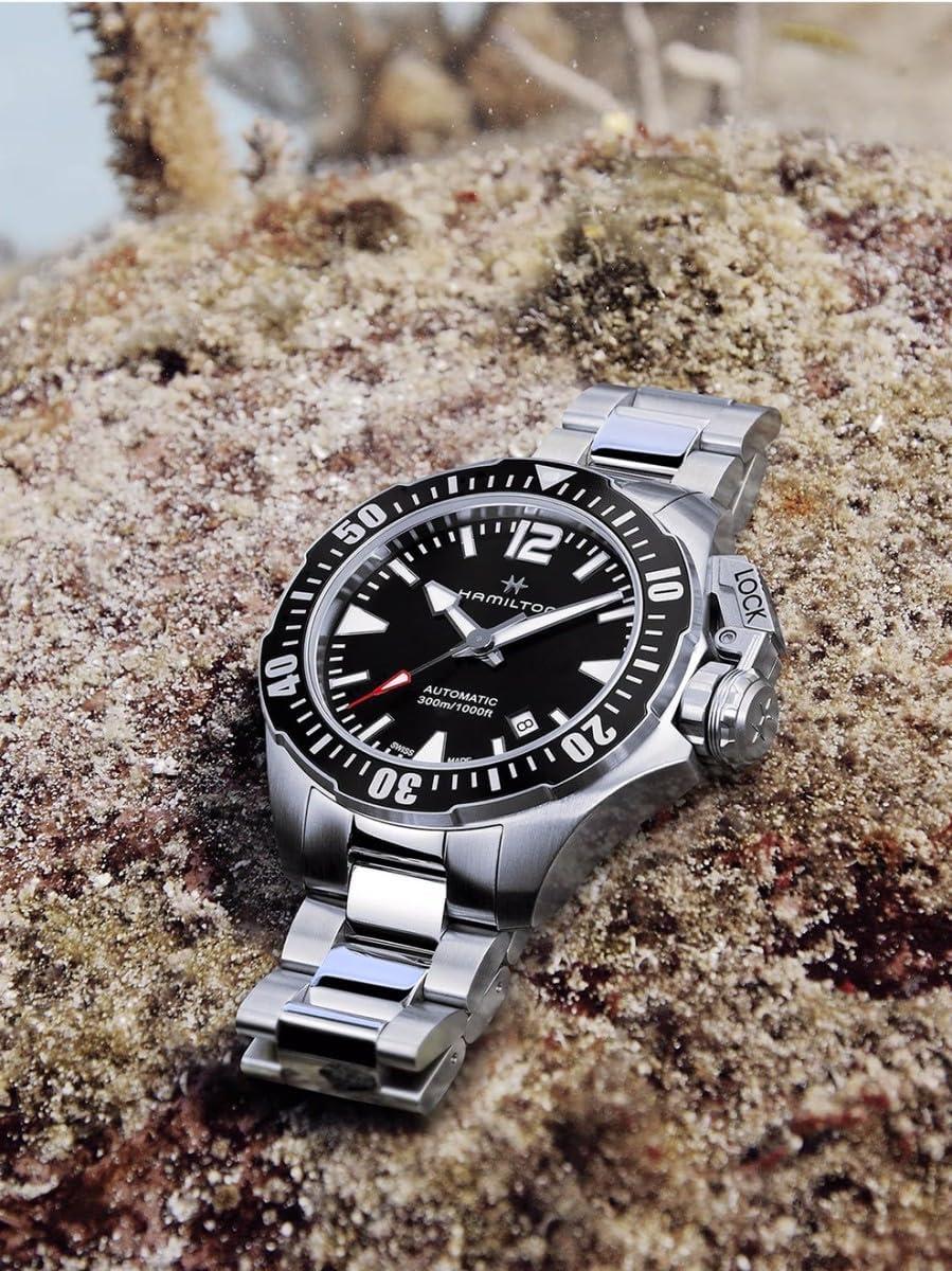 The original Hamilton Frogman was created for U.S. Naval 'Frogman' teams and featured in the 1951 smash-hit movie 'The Frogmen'. Almost 70 years have passed since then and watchmaking technology has come a long way. What hasn't changed are the vital features that made the watch as big a hit as the movie: Uni-directional rotating bezel, supreme water resistance and underwater luminescence.