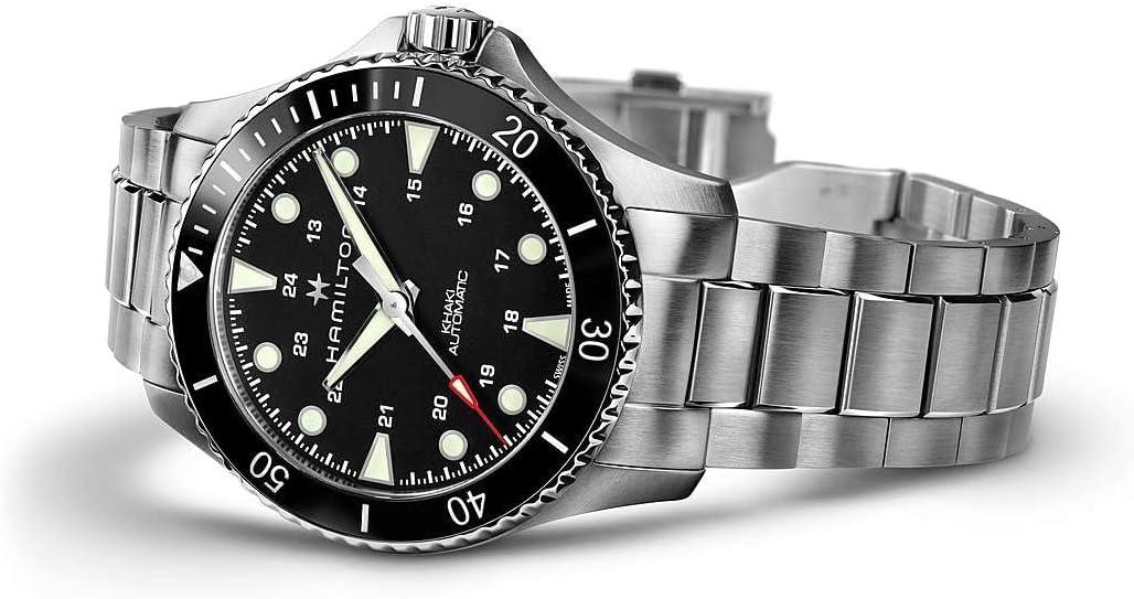 Hamilton Khaki Navy Automatic Men’s Watch, 43mm Stainless Steel Case, Swiss Made, Black Dial Analog Wrist Watch for Men, 300m Waterproof, Sapphire Crystal, Stainless Steel Strap
