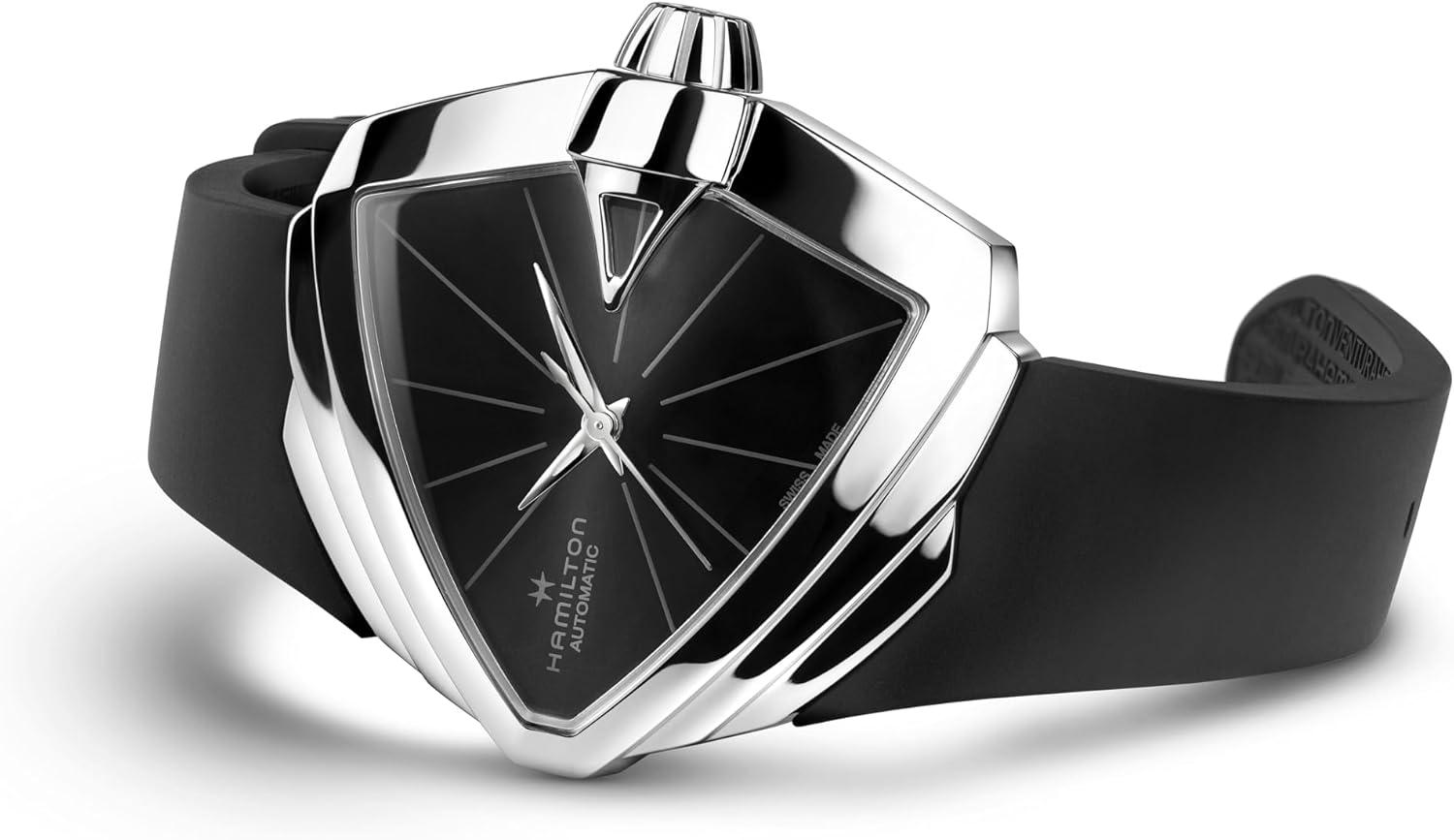 Hamilton Ventura Automatic Men’s Watch, 34mm x 38mm Stainless Steel Case, Swiss Made, Black Dial Analog Wrist Watch for Men, 50m Waterproof, Sapphire Crystal, Rubber Strap