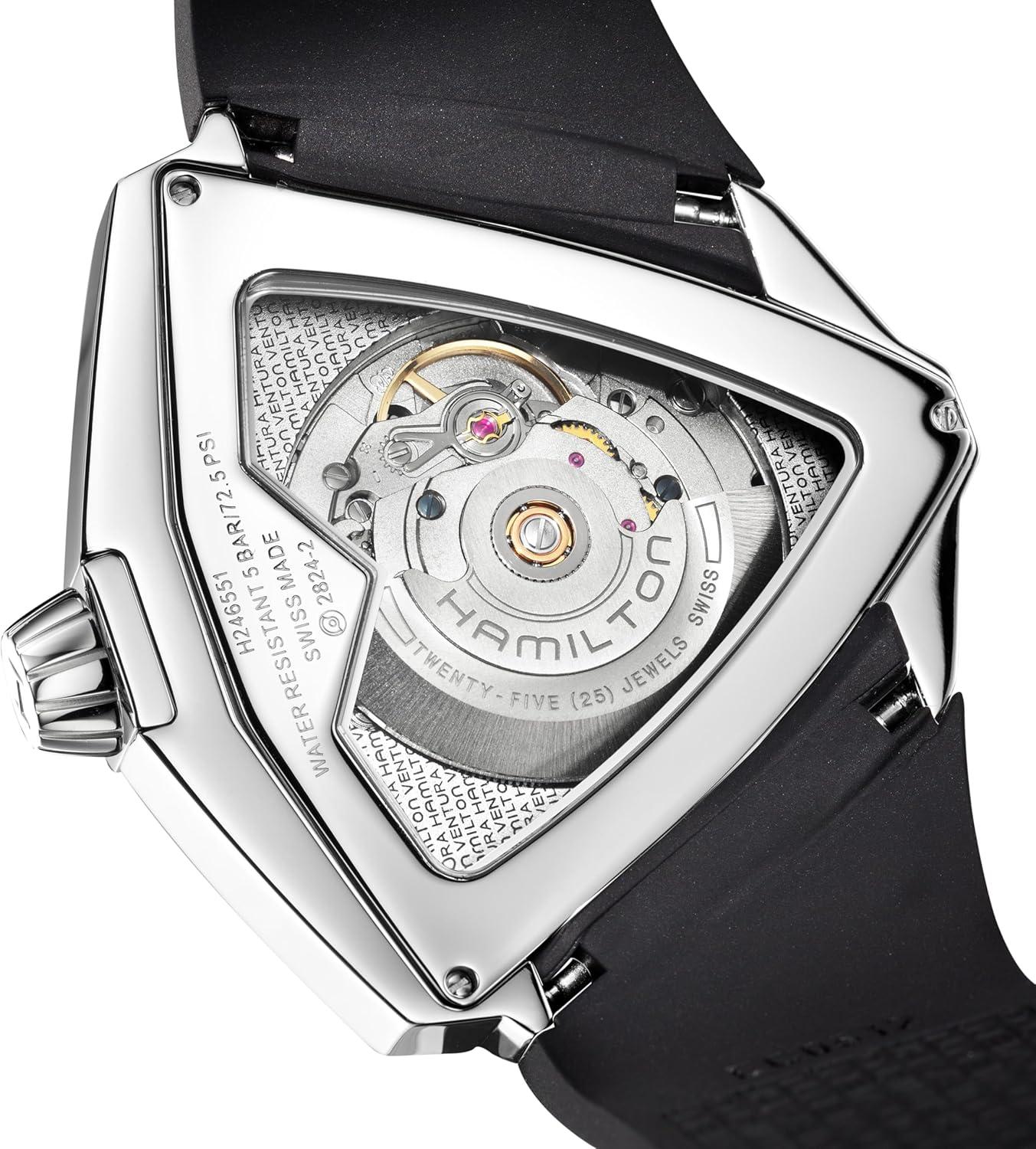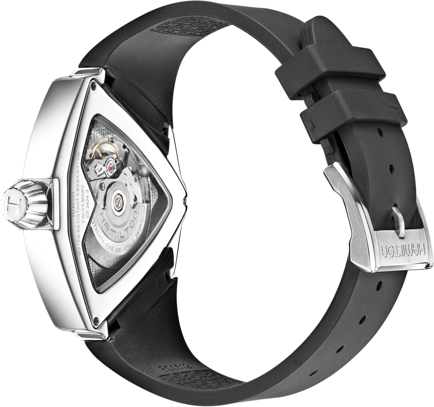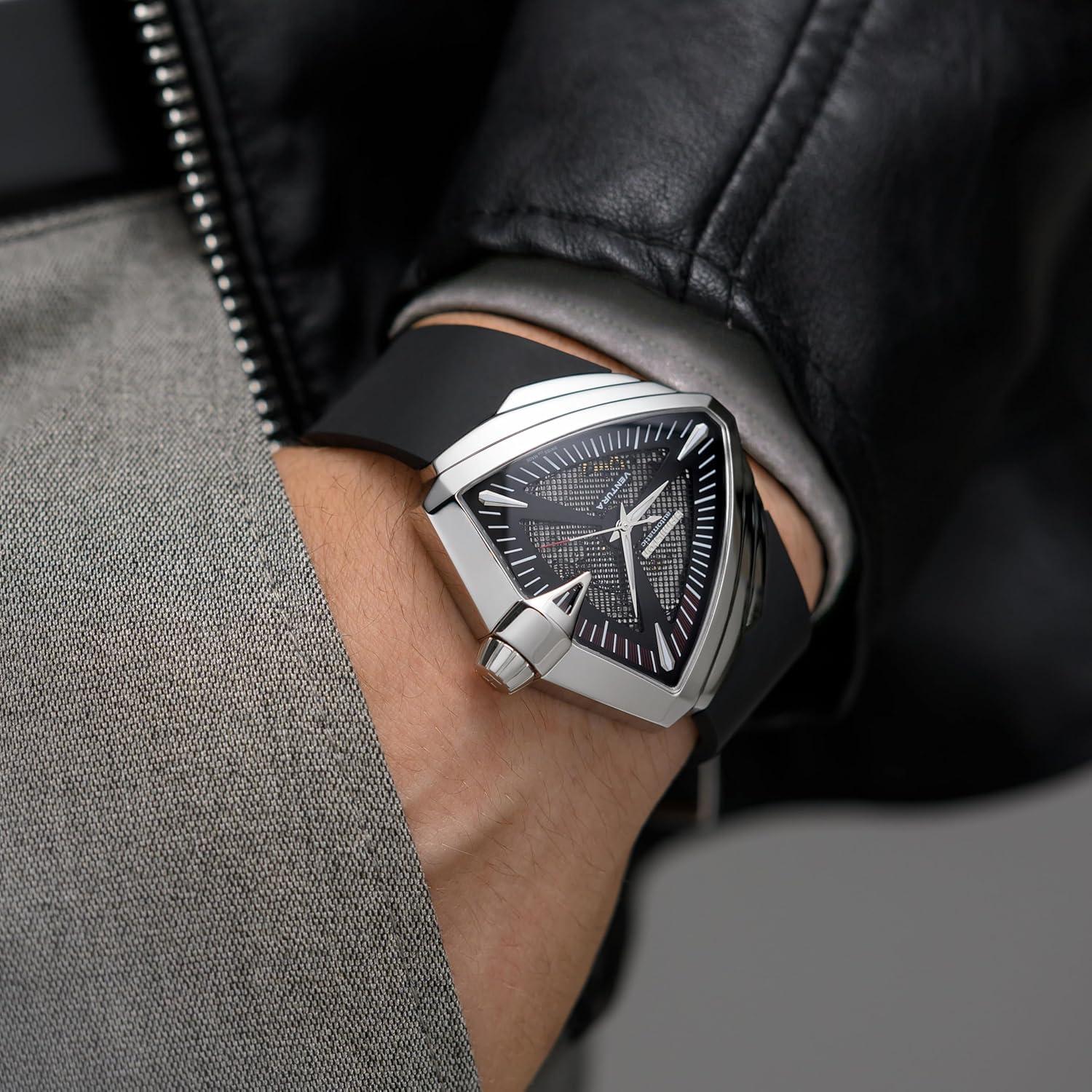 Hamilton Ventura Automatic Men’s Watch, 46mm x 46mm Stainless Steel Case, Swiss Made, Black Dial Analog Wrist Watch for Men, 50m Waterproof, Sapphire Crystal, 3-Hand Movement, Rubber Strap